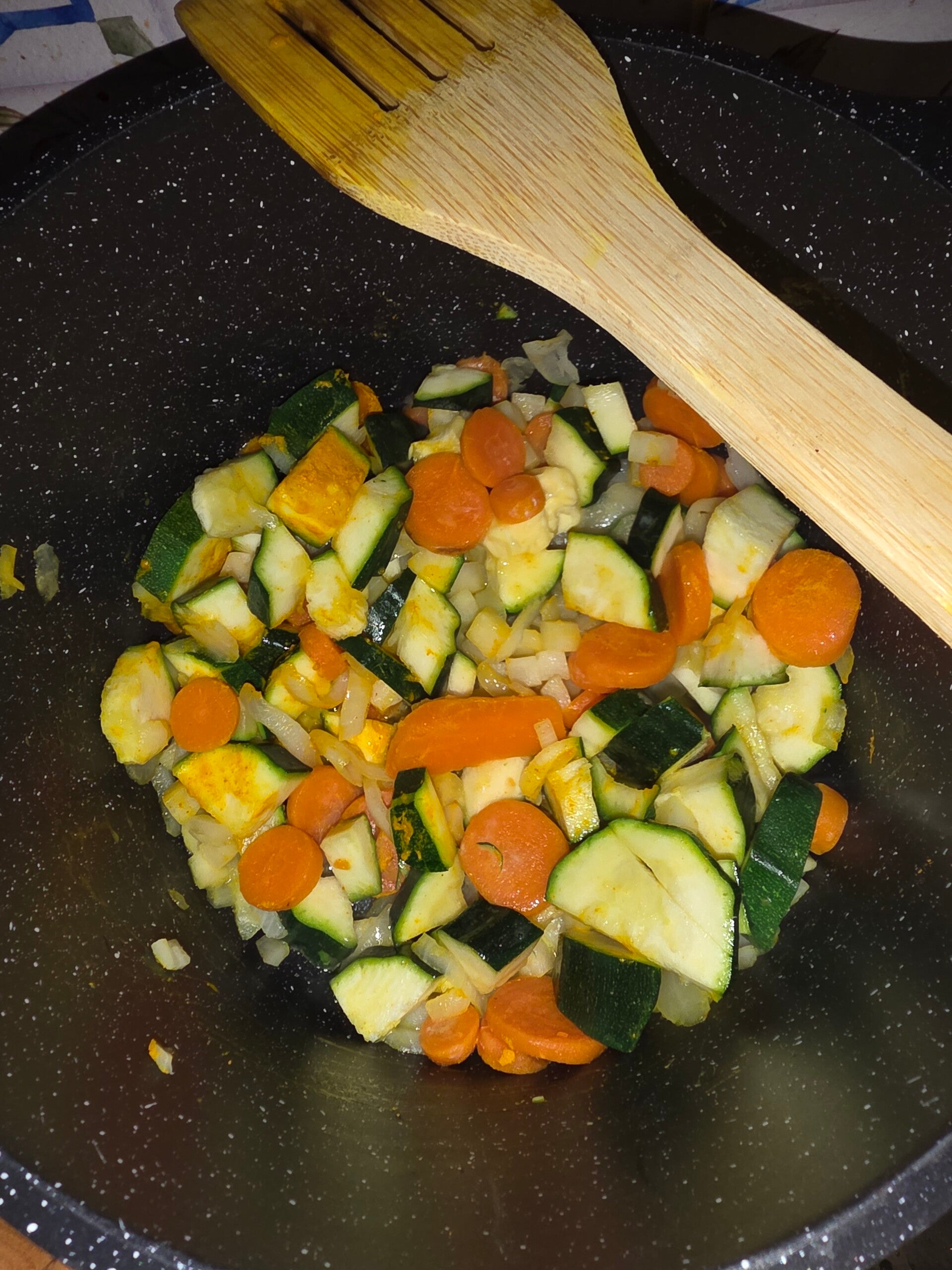 Faire revenir légèrement l’oignon.